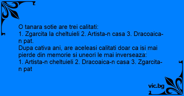 1. Artista-n cheltuieli 2. Dracoaica-n casa 3. Zgarcita-n pat