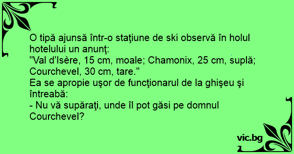 O tipă ajunsă într-o staţiune de ski observă în holul hotelului un anunţ: