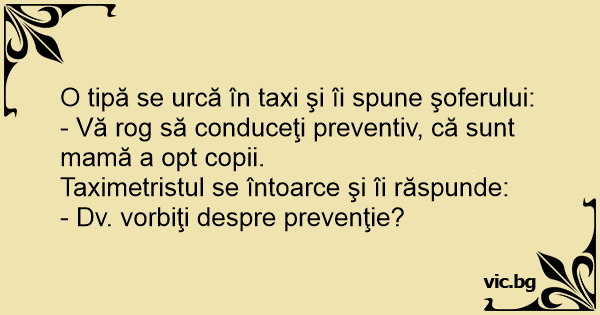 O tipă se urcă în taxi şi...