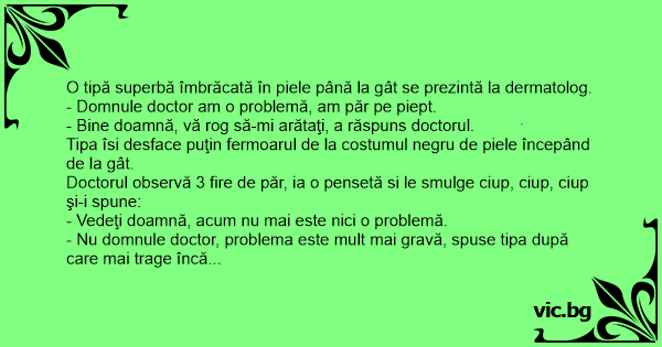 - Domnule doctor am o problemă, am păr pe piept.