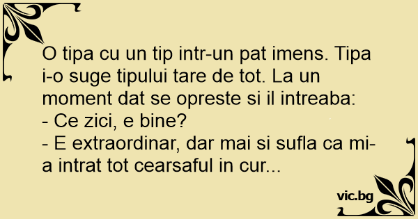 - E extraordinar, dar mai si sufla ca mi-a intrat tot cearsaful in cur...