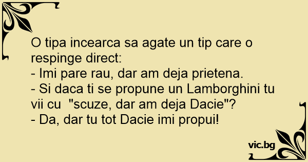- Si daca ti se propune un Lamborghini tu vii cu "scuze, dar am deja Dacie"?