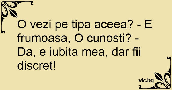 O vezi pe tipa aceea? - E frumoasa, O cunosti? - Da, e iubita mea, dar fii discret!