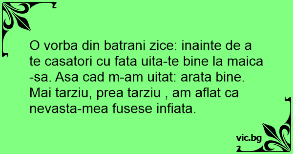 O vorba din batrani zice: inainte de a te casatori cu fata uita-te bine la maica-sa. Asa саd m-am uitat: arata bine.