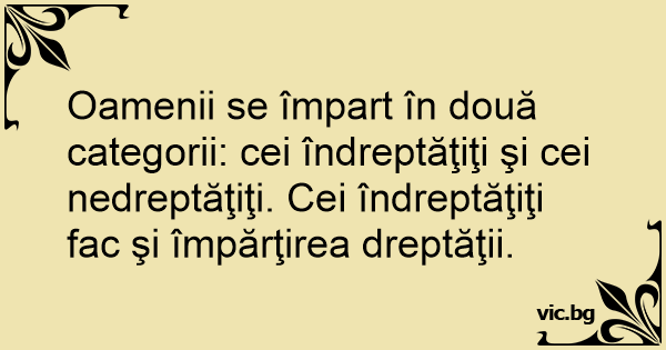 Oamenii se împart în două categorii: cei îndreptăţiţi şi cei nedreptăţiţi. Cei îndreptăţiţi fac şi împărţirea dreptăţii.