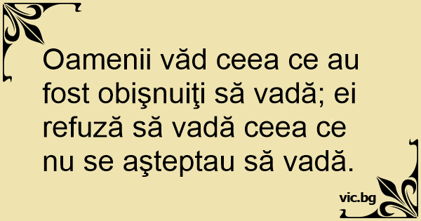 Oamenii văd ceea ce au fost obişnuiţi să vadă; ei refuză să vadă ceea ce nu se aşteptau să vadă.