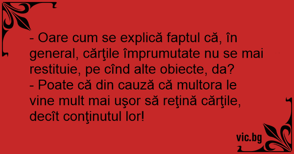 - Oare сuм se explică faptul că, în general, cărţile împrumutate nu se mai restituie, pe cînd alte obiecte, da?