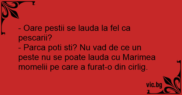 - Parca poti sti? Nu vad de ce un peste nu se poate lauda cu Marimea momelii pe care a furat-o din cirlig.