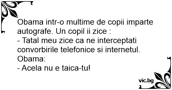 Obama intr-o multime de copii imparte autografe. Un copil ii zice :
