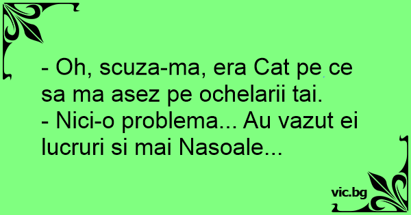 - Oh, scuza-ma, era Cat pe ce sa ma asez pe ochelarii tai.