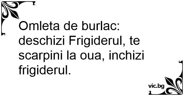 Omleta de burlac: deschizi Frigiderul, te scarpini la oua, inchizi frigiderul.