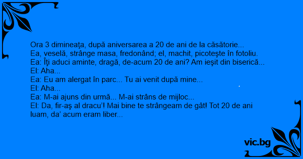 Ora 3 dimineaţa, după aniversarea a 20 de ani de la căsătorie...
