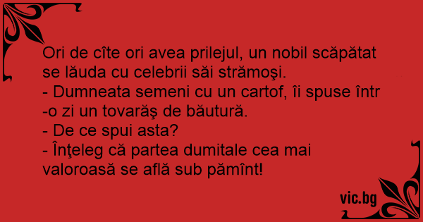 - Dumneata semeni cu un cartof, îi spuse într-o zi un tovarăş de băutură.