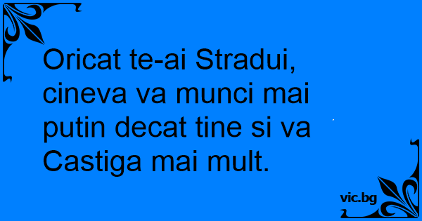 Oricat te-ai Stradui, cineva va munci mai putin decat tine si va Castiga mai mult.
