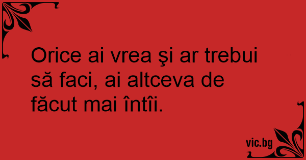 Orice ai vrea şi ar trebui să faci, ai altceva de făcut mai întîi.