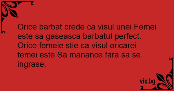Orice femeie stie ca visul oricarei femei este Sa manance fara sa se ingrase.