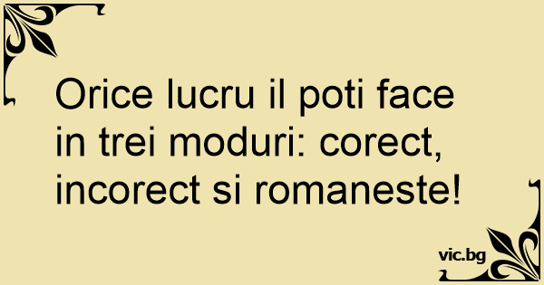 Orice lucru il poti face in trei moduri: corect, incorect si romaneste!
