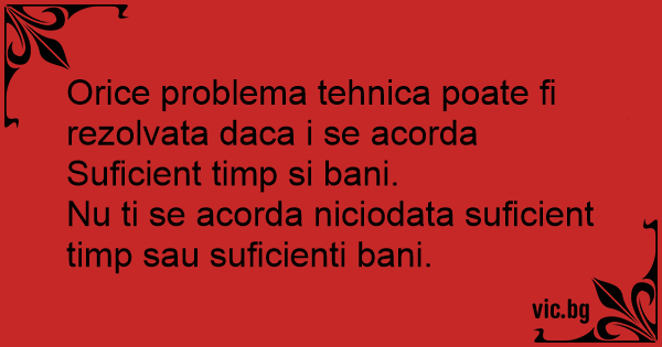 Orice problema tehnica poate fi rezolvata daca i se acorda Suficient timp si bani.