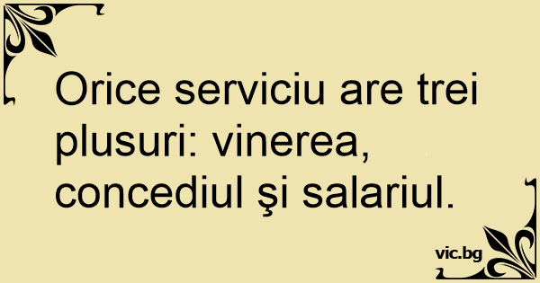 Orice serviciu are trei plusuri: vinerea, concediul şi salariul.