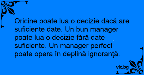 Oricine poate lua o decizie dacă are suficiente date. Un bun manager poate lua o decizie fără date suficiente. Un manager perfect poate opera în deplină ignoranţă.