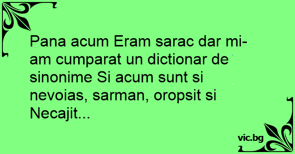 Pana acum Eram sarac dar mi-am cumparat un dictionar de sinonime Si acum sunt si nevoias, sarman, oropsit si Necajit...