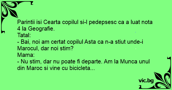 - Bai, noi am certat copilul Asta ca n-a stiut unde-i Marocul, dar noi stim?