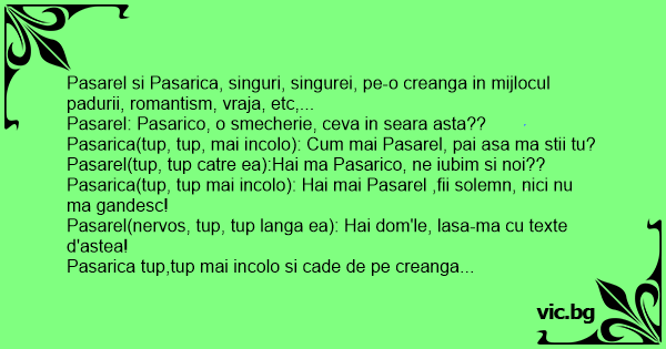 Pasarel(tup, tup catre ea):Hai ma Pasarico, ne iubim si noi??