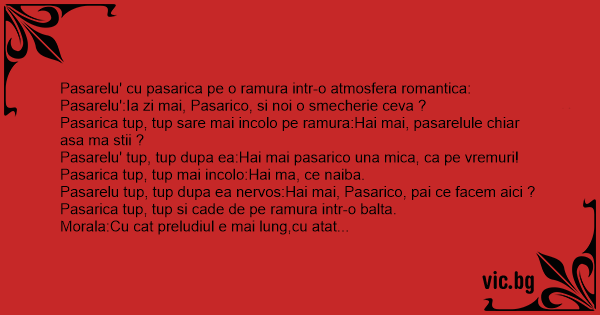 Pasarelu':Ia zi mai, Pasarico, si noi o smecherie ceva ?
