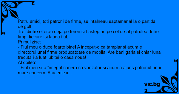 Patru amici, toti patroni de firme, se intalneau saptamanal la o partida de golf.
