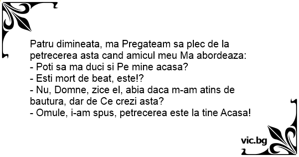 Patru dimineata, ma Pregateam sa plec de la petrecerea asta cand amicul meu Ma abordeaza: