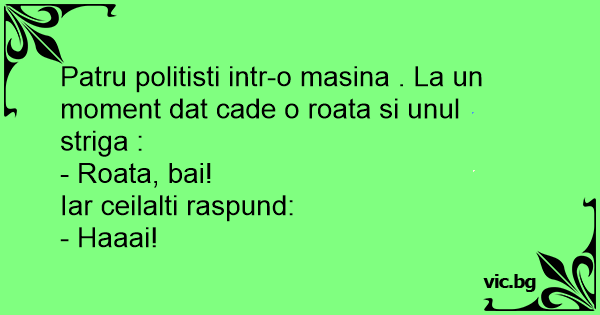 Patru politisti intr-o masina . La un moment dat cade o roata si unul striga :