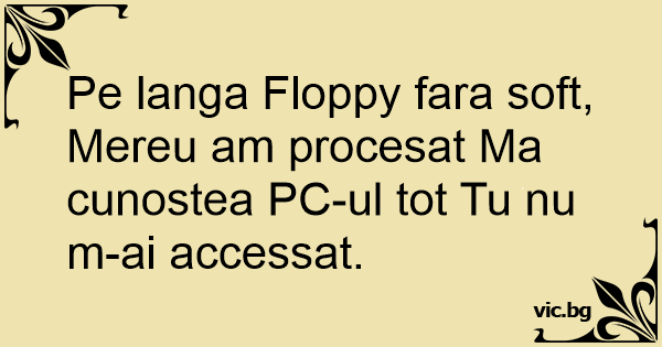 Pe langa Floppy fara soft, Mereu am procesat Ma cunostea PC-ul tot Tu nu m-ai accessat.