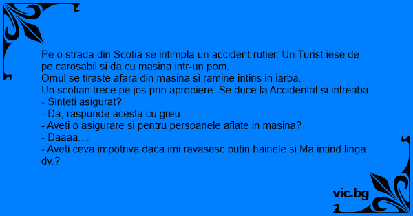 Un scotian trece pe jos prin apropiere. Se duce la Accidentat si intreaba: