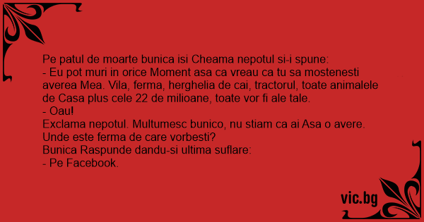 Exclama nepotul. Multumesc bunico, nu stiam ca ai Asa o avere. Unde este ferma de care vorbesti?