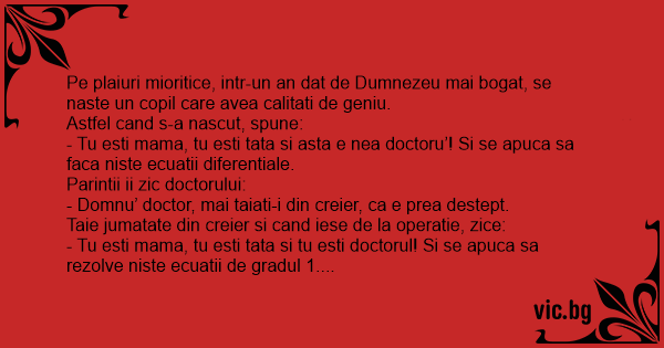 - Domnu’ doctor, inca e prea destept! Mai taiati-i din creier.