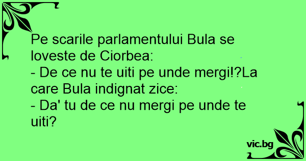 - De ce nu te uiti pe unde mergi!?La care Bula indignat zice: