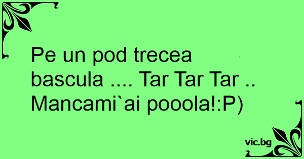 Pe un pod trecea bascula .... Tar Tar Tar .. Mancami`ai pooola!:P)