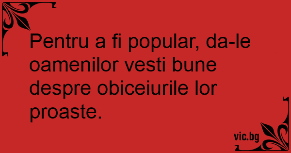 Pentru a fi popular, da-le oamenilor vesti bune despre obiceiurile lor proaste.