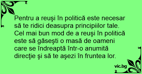 Pentru a reuşi în politică este necesar să te ridici deasupra principiilor tale. Cel mai bun mod de a reuşi în politică este să găseşti o masă de oameni care se îndreaptă într-o anumită direcţie şi să te aşezi în fruntea lor.