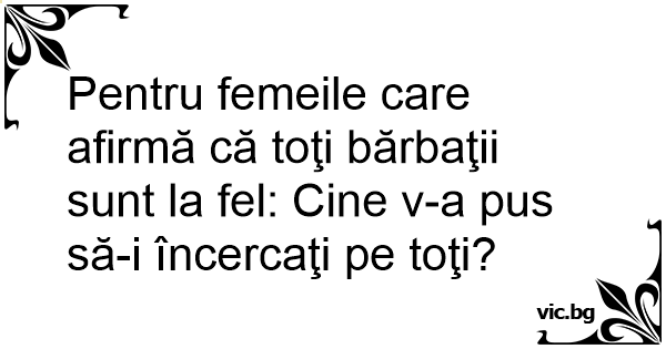 Pentru femeile care afirmă că toţi bărbaţii sunt la fel: Cine v-a pus să-i încercaţi pe toţi?