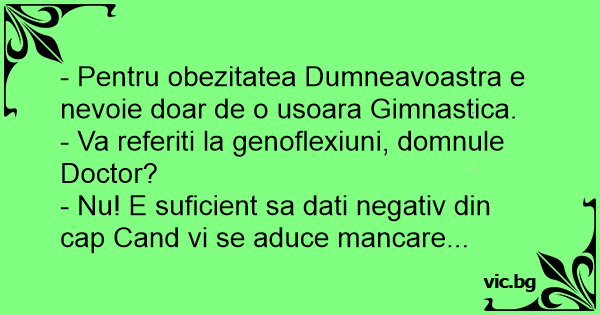 - Pentru obezitatea Dumneavoastra e nevoie doar de o usoara Gimnastica.