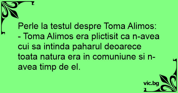 Perle la testul despre Toma Alimos: