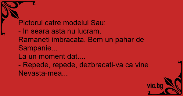 - Repede, repede, dezbracati-va ca vine Nevasta-mea...