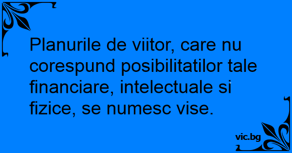 Planurile de viitor, care nu corespund posibilitatilor tale financiare, intelectuale si fizice, se numesc vise.