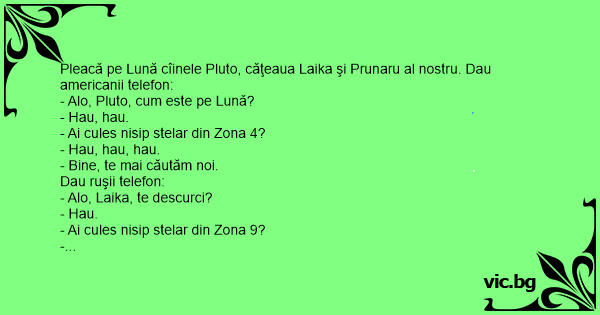 Pleacă pe Lună cîinele Pluto, căţeaua Laika şi Prunaru al nostru. Dau americanii telefon: