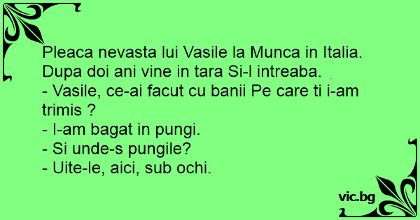 - Vasile, ce-ai facut cu banii Pe care ti i-am trimis ?