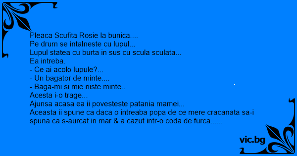 Aceasta ii spune ca daca o intreaba popa de ce mere cracanata sa-i spuna ca s-aurcat in mar & a cazut intr-o coda de furca...