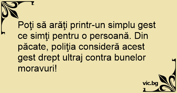 Poţi să arăţi printr-un simplu gest ce simţi pentru o persoană. Din păcate, poliţia consideră acest gest drept ultraj contra bunelor moravuri!