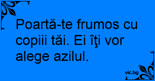 Poartă-te frumos cu copiii tăi. Ei îţi vor alege azilul.