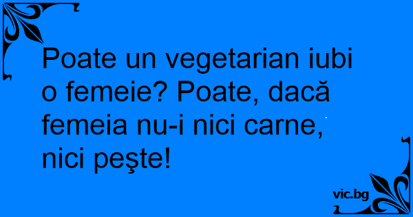 Poate un vegetarian iubi o femeie? Poate, dacă femeia nu-i nici carne, nici peşte!